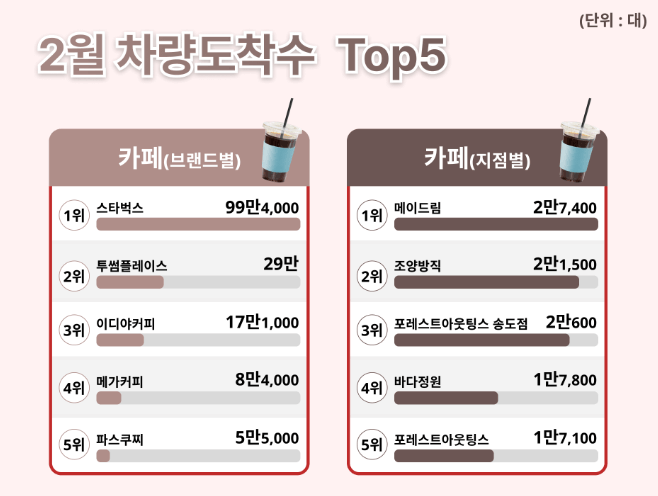 Tmap 사용자가 가장 많이 방문한 전국의 카페를 조사했다. 1위부터 5위까지 자세히 알아보도록 하자.